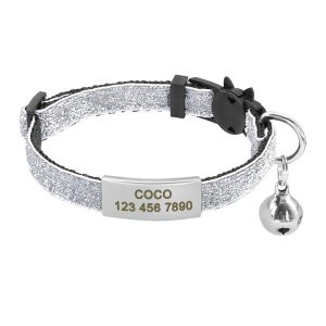 Collier pour chat personnalisé en cuir à paillettes
