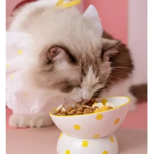 Bol surélevé à pois jaunes pour chat | Design pastel et ludique