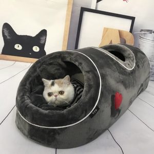 Niche grotte avec tapis en flanelle pour chat