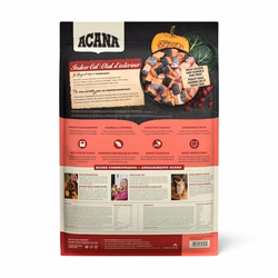Poulet frais (11 %), saumon cru (9 %), truite crue (9 %), farine de poulet (9 %), farine de goberge (9 %), farine de hareng (9 %), haricots pinto entiers, pois entiers, abats de poulet frais (foie, cœur, gésier) (6 %), lentilles rouges entières, pois chiches entiers, lentilles vertes entières, gras de poulet (4 %), dinde crue (4 %), œufs frais (4 % ), miscanthus moulu, fibres de pois, huile de poisson (0,5 %), foie de dinde cru (0,5 %), varech séché, citrouille entière fraîche, courge musquée entière fraîche, carottes entières fraîches, pommes entières fraîches, poires entières fraîches, courgettes entières fraîches, racine de chicorée séchée, chou frisé frais, épinards frais, feuilles de navet fraîches, feuilles de betterave fraîches, canneberges entières, bleuets entiers, amélanches entières, racine de curcuma, chardon-Marie, racine de bardane, lavande, racine de guimauve, églantier.