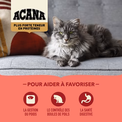 La recette pour chats d’intérieur plus forte teneur en protéines est la première recette sans grains ajoutés pour les chats d’intérieur ! Riche en poulet élevé en liberté , en truite et en saumon, cette recette de qualité supérieure est préparée avec 75 % d’ingrédients d’origine animale pour satisfaire les envies de protéines de votre chat d’intérieur. Pour répondre aux besoins uniques de votre chat d’intérieur, cette nourriture procure trois bienfaits clés pour la santé, dont le maintien du poids pour l’aider à maintenir un poids santé. Un mélange de probiotiques et de fibres contribue au maintien de la santé digestive, et les acides gras oméga-3 et oméga-6 donnent une peau saine et un pelage brillant. Comblez les envies de protéines animales de votre chat d’intérieur tout en répondant à ses besoins uniques grâce à la recette pour chats d’intérieur ACANA Plus forte teneur en protéines!