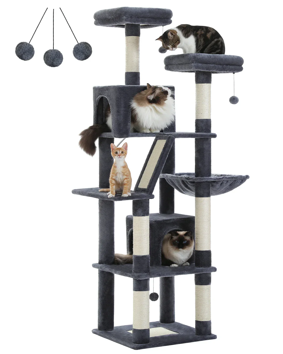 Offrez à votre chat un véritable espace de repos et de jeu avec cet arbre à chats haut équipé d’un hamac et de niches spacieuses. Ces refuges douillets apportent une sensation apaisante à votre compagnon, particulièrement précieuse lors de périodes de convalescence ou de repos prolongé. Conçu pour devenir un lieu de sérénité, il est idéal pour permettre à votre chat de retrouver son énergie tout en se sentant en sécurité.