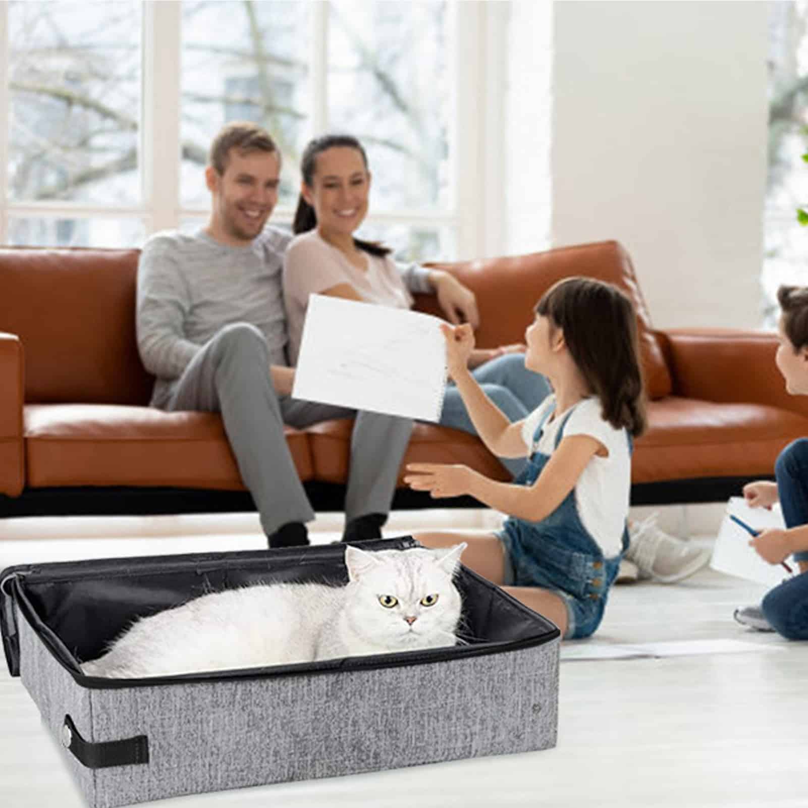 Ce bac à litière de voyage à déplier pour chat est un accessoire pratique et pratique qui vous permet de transporter aisément votre chat partout où vous allez. Il est léger et petit, ce qui le rend facile à entreposer et à transporter. Il se déplie vite et sans difficulté pour un rangement et un transport pratiques. Son couvercle amovible maintient la litière à l’intérieur et empêche les mauvaises odeurs de sortir. La conception intérieure spéciale permet à la litière de s’accumuler sans se mélanger et offre une grande capacité pour contenir toute la litière dont votre chat a besoin. Le fond antidérapant et les poignées rembourrées offrent une prise en main agréable et une manipulation aisée. Ce bac à litière de voyage à déplier pour chat est un must pour les propriétaires de chats qui veulent garder leur chat net et heureux.