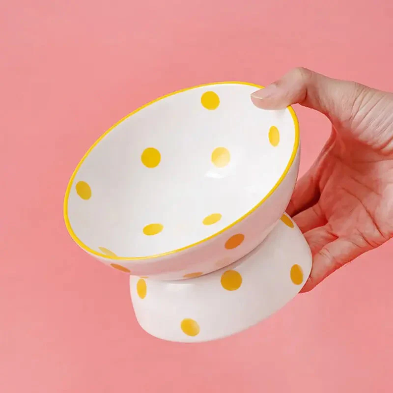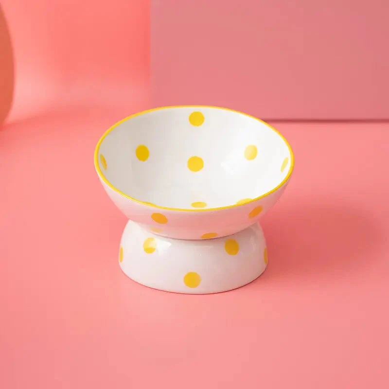 Le bol surélevé à pois jaunes pour chat est bien plus qu’un simple accessoire : il incarne une délicate alliance entre design ludique et utilité. Fabriqué avec soin, il permet de surélever les repas de votre compagnon, une caractéristique souvent recommandée par les vétérinaires pour réduire les tensions au niveau des cervicales et améliorer la digestion, notamment dans le cadre de traitements médicaux ou pour les chats plus âgés. Le motif à pois jaunes apporte une touche douce et chaleureuse à votre intérieur, transformant cet objet du quotidien en un élément plaisant à voir dans votre espace. Inspiré par des valeurs d’harmonie et de simplicité, il répond au besoin d’un environnement à la fois pratique et joyeux, tout en offrant à votre chat un moment paisible à chaque repas.