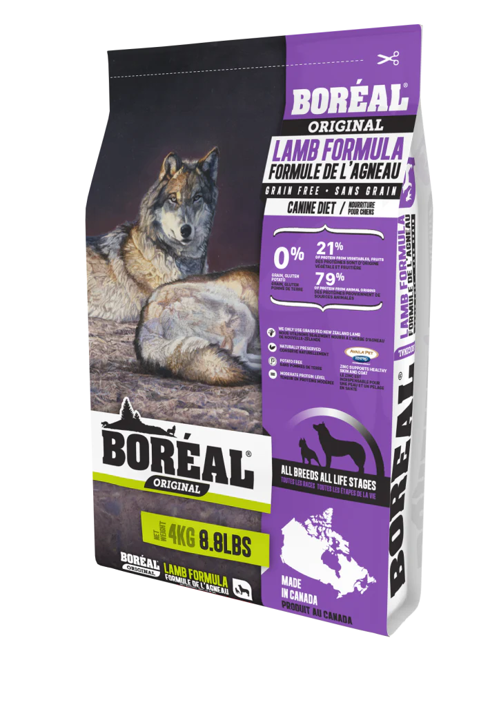 La nourriture Boréal Original chien à l’agneau offre à votre chien une alimentation équilibrée avec, comme premier ingrédient, de la viande fraîche d’agneau provenant de la Nouvelle-Zélande ainsi que de la farine d’agneau comme sources de protéines. Cette nourriture sans céréales, sans pommes de terre et sans glutens permet de limiter les allergènes et contient des ingrédients à faible indice glycémique pour maintenir un poids santé chez votre animal. Comme toutes les nourritures Boréal, elle contient du zinc organique Availa®Zn pour une peau et un pelage en santé. Cette recette convient à tous les stades de vie ainsi qu’à toutes les races.
