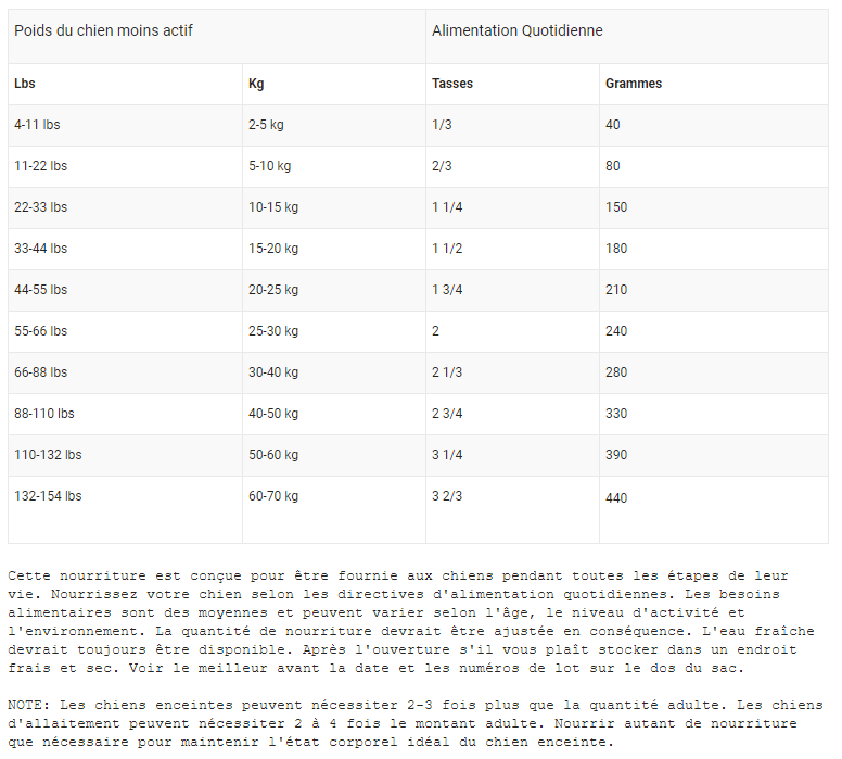 Agneau frais, Farine d’agneau, pois, amidon de pois, œuf entier séché, gras de porc, haricot blanc du Nord, farine de luzerne déshydratée, graines de lin, saveur naturelle d’agneau, sel, supplément de vitamine E, chlorure de choline, lécithine, extrait de levure, extrait de racine de chicorée, pomme, carotte, carbonate de calcium, extrait de thé vert, sulfate de zinc, sulfate ferreux, bleuets, taurine, DL-méthionine, complexe d’acides aminés de zinc, sulfate de cuivre, sulfate de manganèse, supplément de niacine, pantothénate de calcium, sélénite de sodium, complexe d’acides aminés de fer, complexe d’acides aminés de manganèse, supplément de vitamine A, riboflavine, supplément de vitamine B12, mononitrate de thiamine, iodate de calcium, chlorhydrate de pyridoxine, supplément de vitamine D3, acide folique