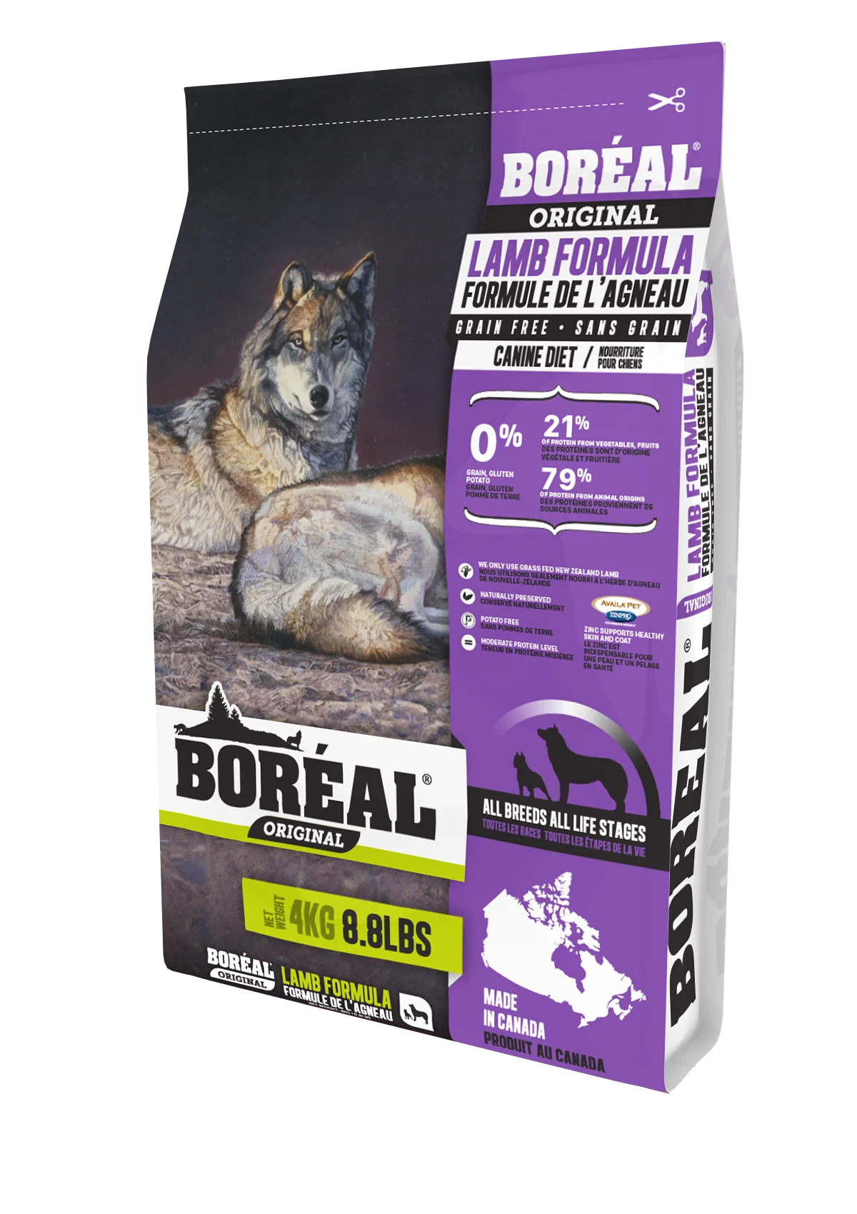 Boréal Original Agneau est une nourriture sans céréales utilisant l’agneau comme une nouvelle source de protéine unique. Notre régime Original Agneau utilise de la viande fraîche et de la farine d’agneau comme sources de protéines. L’agneau provient de la Nouvelle-Zélande. C’est un régime alimentaire quotidien pouvant être utilisé afin de maintenir le poids de votre chien et pouvant également servir de préparation hypoallergénique. Nous utilisons une base de haricots et de pois pour remplacer les céréales que l’on retrouve dans plusieurs nourritures pour chiens et nous y ajoutons également une combinaison de végétaux comprenant des bleuets et des canneberges, améliorant ainsi le goût de la nourriture en plus d’y ajouter des antioxydants offrant plusieurs bienfaits pour la santé. Nos nourritures pour chiens Boréal contiennent également du zinc organique Availa®Zn. Availa®Zn est facilement absorbé et est beaucoup plus accessible pour un chien que les autres sources de zinc. Le zinc est essentiel pour une peau et un pelage en santé.