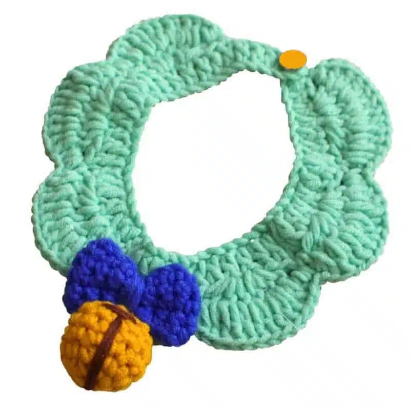 Ce collier en laine crocheté avec boule pour chat est irrésistible pour tous ceux qui sont fans des petits matous. Sa mignonnerie et sa douceur sauront mettre en valeur votre compagnon à quatre pattes. Il est disponible en plusieurs nuances pour que vous trouviez la couleur idéale.