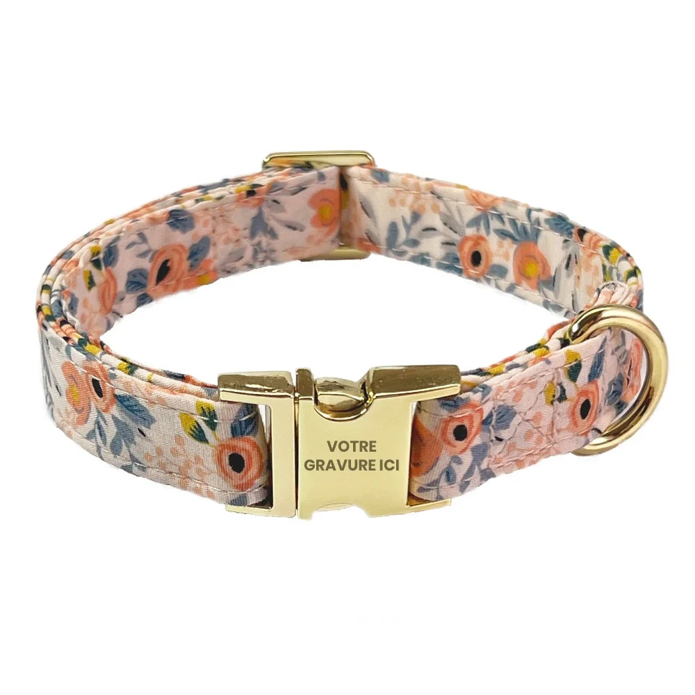 Optez pour l’élégance avec ce collier pour chat personnalisé, parfait pour mettre en valeur la personnalité unique de votre compagnon à quatre pattes ! Avec son motif floral délicat et ses tons pastel, ce collier ajoute une touche raffinée à n’importe quel chat. La boucle en métal doré, gravée à votre goût, permet de graver le nom de votre chat et vos coordonnées, pour une sécurité optimale. Conçu dans un tissu doux et léger, ce collier est pensé pour ne pas gêner votre chat, même lors de ses siestes prolongées ou de ses explorations curieuses. Grâce à son ajustement facile, ce collier s’adapte parfaitement au cou de votre chat, le rendant aussi confortable que stylé.