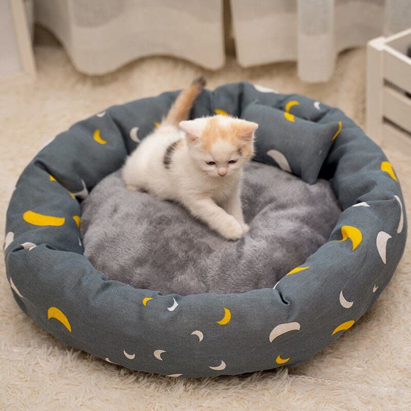 Votre minou a également besoin d’un lit douillet et confortable pour dormir à poings fermés ! C’est pourquoi nous vous proposons ce coussin pour chat gris à motif lune, accompagné d’un petit oreiller. Votre petit animal de compagnie appréciera de se reposer sur ce matelas pour chat. Il passera de bons moments de détente sur ce coussin pour félin.