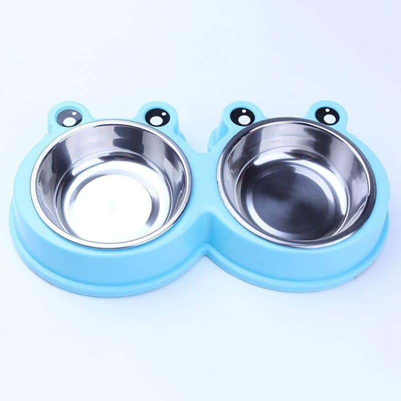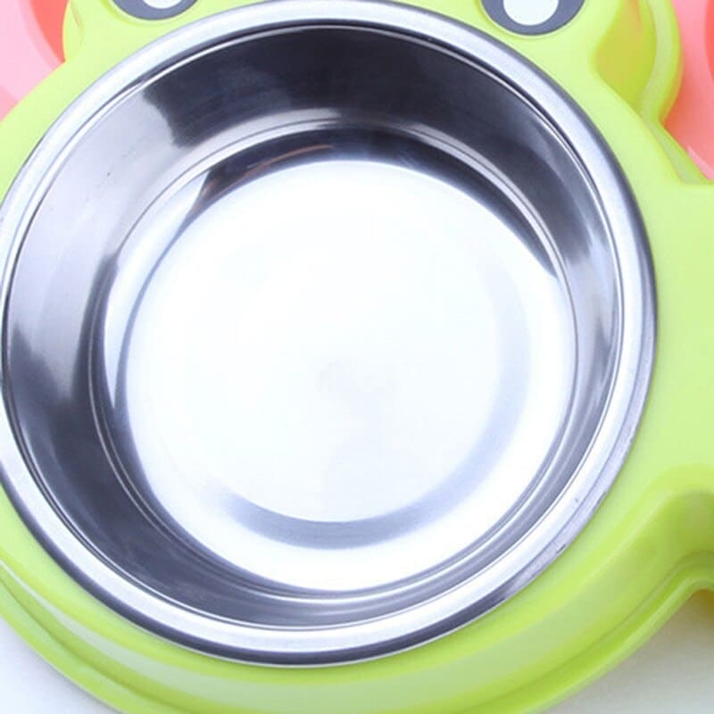Double bol en forme de grenouille pour chat