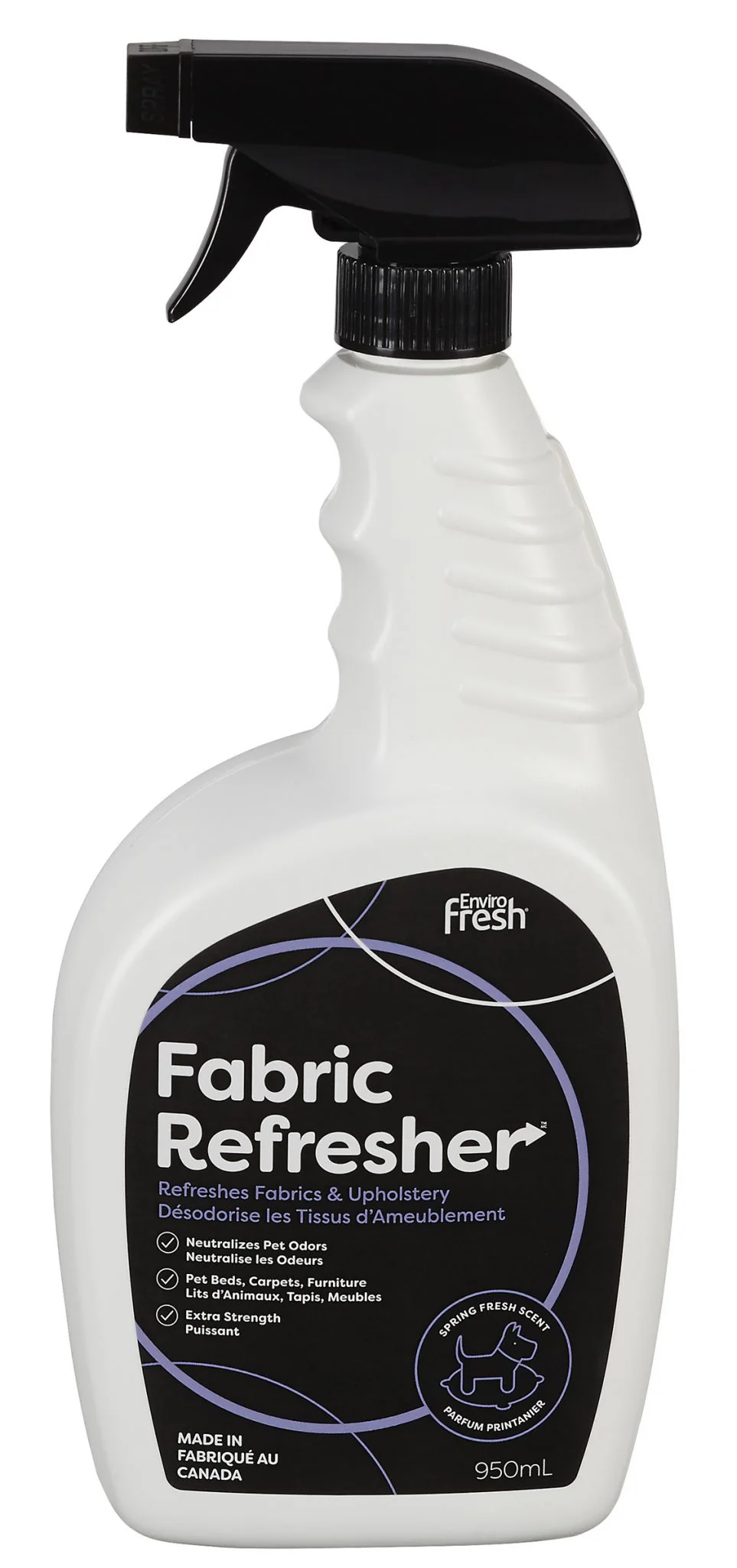 Le désodorisant à tissus Enviro Fresh élimine les odeurs en laissant un parfum doux et subtil de fraîcheur printanière.