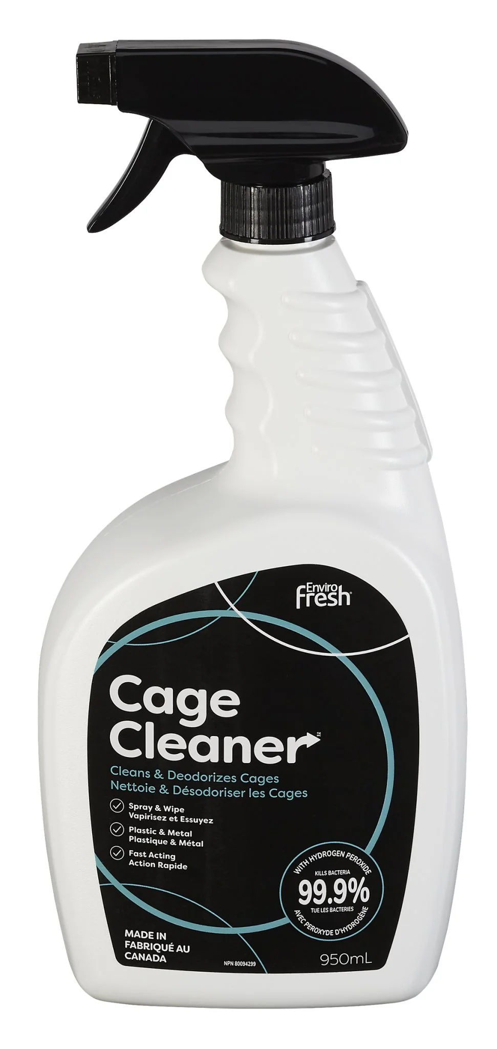 Le nettoyant pour cage Enviro Fresh tue jusqu’à 99,9 % des bactéries sur des surfaces telles que le verre, le métal, le plastique et plus encore.