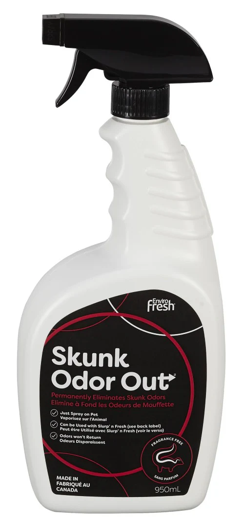 Odor Out Skunk peut être utilisé en toute sécurité directement sur votre animal de compagnie pour éliminer efficacement et de façon permanente les odeurs de mouffette.