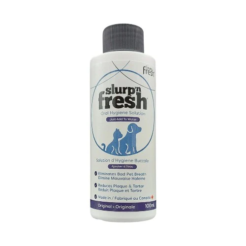 Slurp’n Fresh utilise un mélange spécialisé d’extraits de plantes naturelles pour éliminer les composés produisant des odeurs qui causent la mauvaise haleine des animaux de compagnie. Ces mêmes composés sont généralement associés à la carie dentaire et aux maladies des gencives.