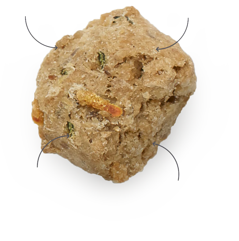 Nous pensons que des ingrédients frais et propres avec un minimum de transformation fournissent aux animaux domestiques la meilleure nutrition possible. Créés avec un nutritionniste vétérinaire, ces grappes 100% humaines sont composées de vrais aliments entiers. Ils sont mélangés en petites quantités, pressés à froid, rôtis lentement et déshydratés pour maintenir les nutriments, les arômes et les textures des aliments entiers. Ils ont l’air différent parce qu’ils sont différents, directement de notre cuisine à la vôtre!