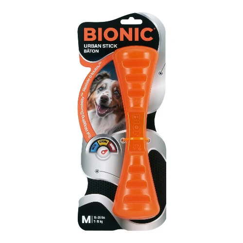 Le bâton BIONIC est un jouet à mâcher interactif pour chiens que l’on peut remplir de gâteries et qui résiste aux mâcheurs les plus acharnés. Puisqu’il est muni d’un double compartiment à gâteries, le jouet double le plaisir de mâchonner. Grâce à sa géométrie défensive brevetée et au caoutchouc BIONIC RUBBER dont il est fait, le bâton BIONIC offre une durabilité inégalée.