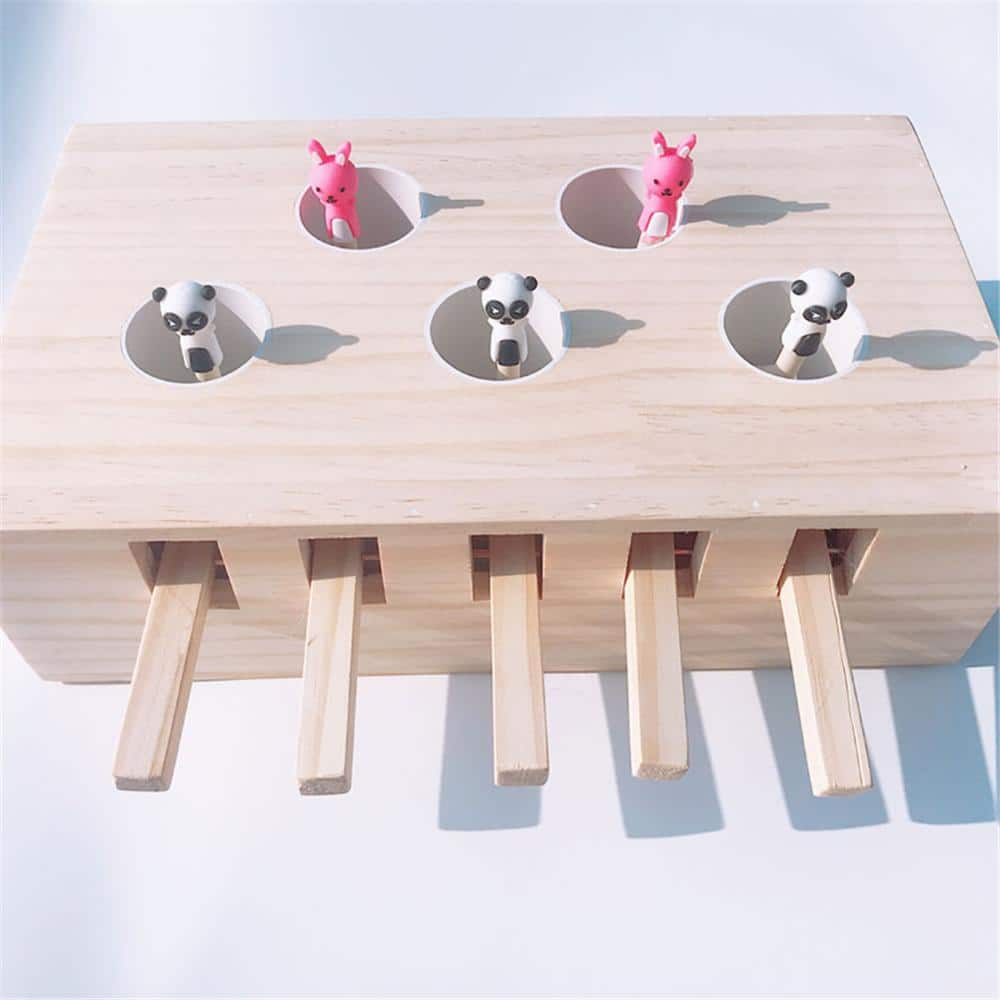 Ce jouet en matière naturelle constitue un divertissement bien intéressant pour les félins curieux. Le chat appuiera sur les leviers en bois qui lui permettront de faire apparaitre et disparaitre des souris en plastique. Un jouet robuste et durable qui saura le captiver pendant un long moment.
