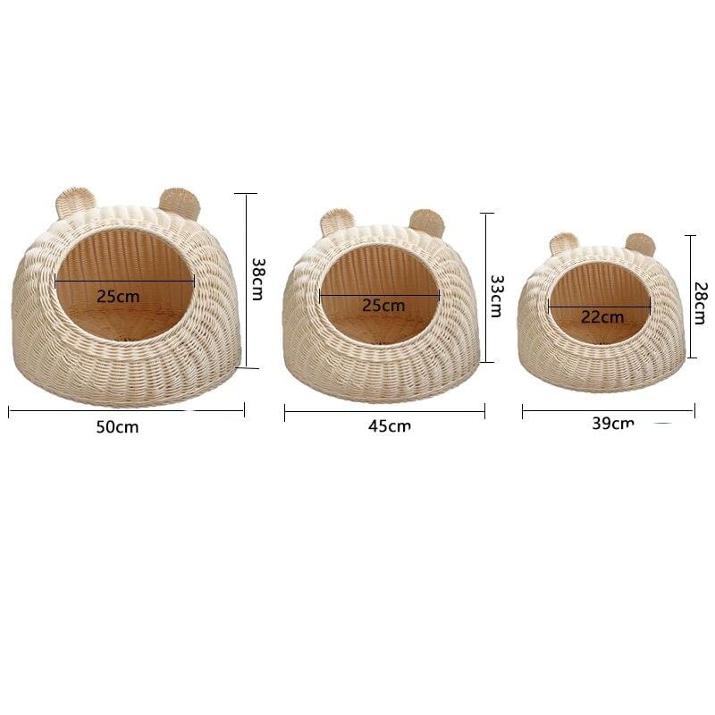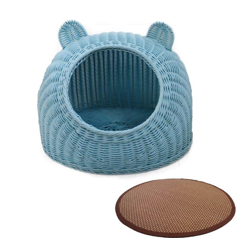 Offrez un cadeau à votre felin: une niche en rotin pour chat, parfaite pour une sieste estivale. Elle est dotée d’un tapis très doux et rafraîchissant. Votre animal de compagnie pourra se reposer calmement et avec tout le confort dont il a besoin. Disponible en quatre couleurs.