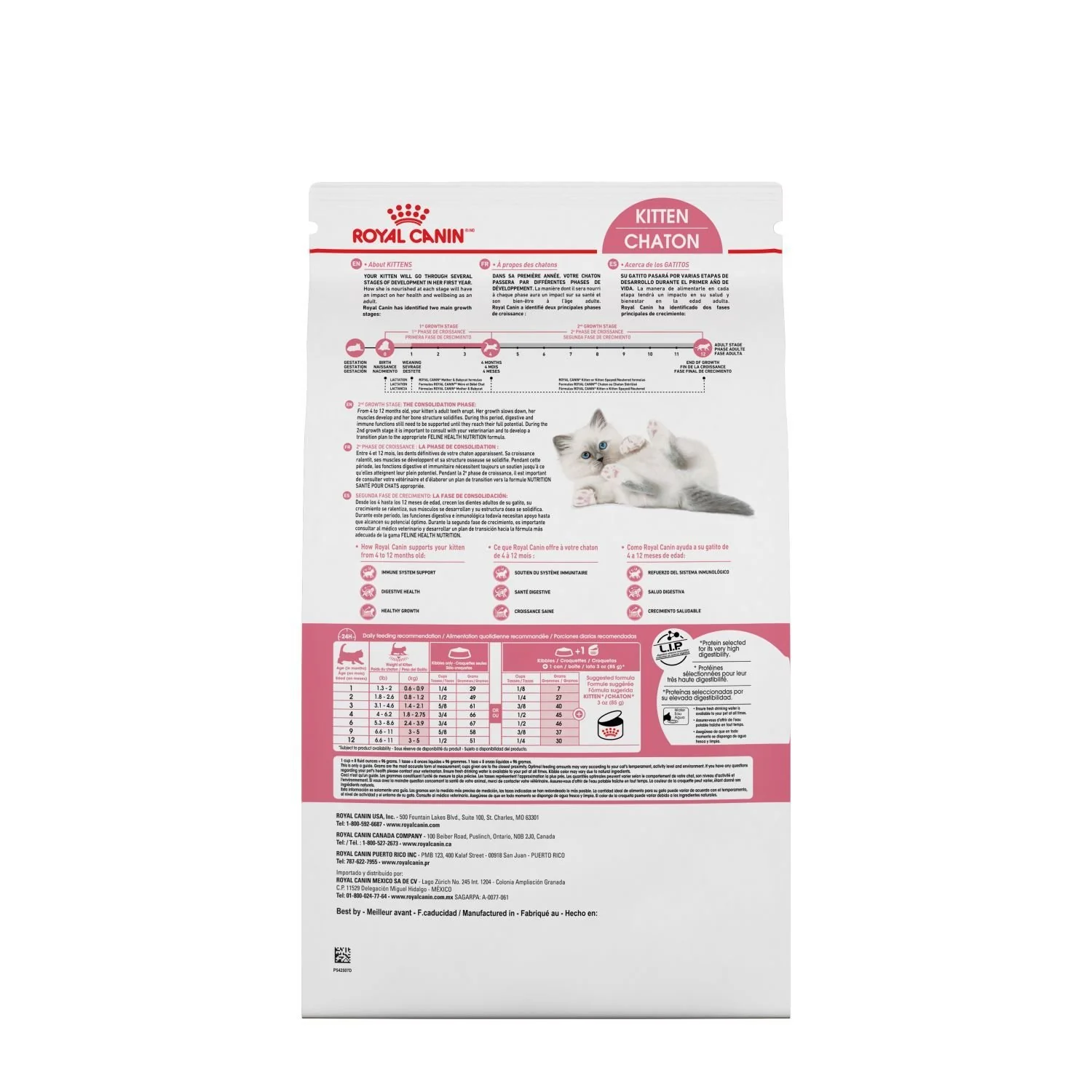 La croissance des chatons s’échelonne sur 2 phases uniques. La première de la naissance à 4 mois et la 2e phase qui s’échelonne de 4 à 12 mois. Lors de la deuxième phase la croissance du chaton ralentit. Un apport nutritionnel précis est essentiel pour assurer qu’il reçoit le soutien dont il a besoin pendant cette période de croissance critique. Pour les chatons en deuxième phase de croissance, de 4 à 12 mois.