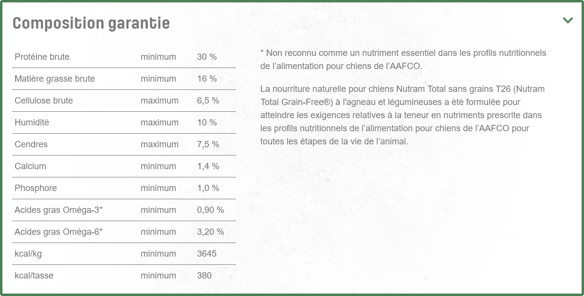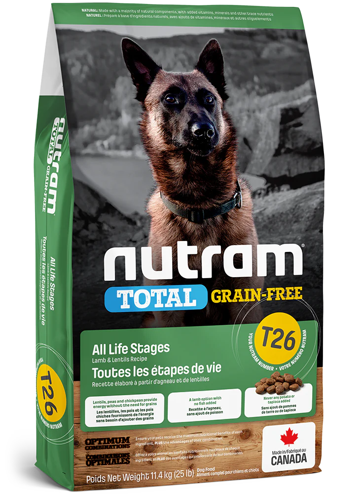 La nourriture naturelle pour chiens Nutram Total sans grains T26 (Nutram Total Grain-Free) à l’agneau et légumineuses est une préparation holistique, riche en nutriments et aux nombreux bienfaits, qui améliore le mieux-être de votre animal de compagnie par la nutrition.