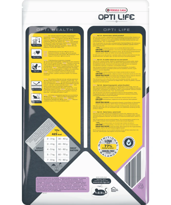 Opti Life Urinary est une formule parfaitement équilibrée à base de poulet, pauvre en glucides et sans céréales, spécialement développée pour maintenir préventivement la santé des voies urinaires de votre chat.