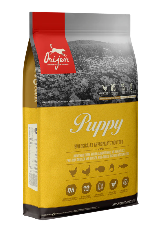 Tous les chiots font mieux avec une alimentation riche en protéines et en graisses d’ingrédients animaux entiers pour soutenir une croissance et un développement maximum. ORIJEN Puppy regorge de protéines de poulet et de dinde en liberté, de poissons sauvages et d’oeufs en cage qui sont livrés dans notre cuisine. Les deux tiers de nos ingrédients d’origine animale sont FRAIS ou CRUS, pour une source concentrée de protéines. Le résultat est une recette riche en nutriments et délicieuse que votre chiot adorera.