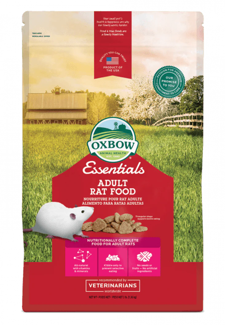 Oxbow’s Essentials – Adult Food est formulé pour répondre aux besoins nutritionnels spécifiques des rats adultes. Cette nourriture pour rats complète et équilibrée est faible en gras et comprend des niveaux exacts de nutriments essentiels pour soutenir la fonction et la performance quotidiennes. L’uniformité de Essentials – Le rat adulte empêche l’alimentation sélective généralement associée aux mélanges et aux régimes à base de graines.