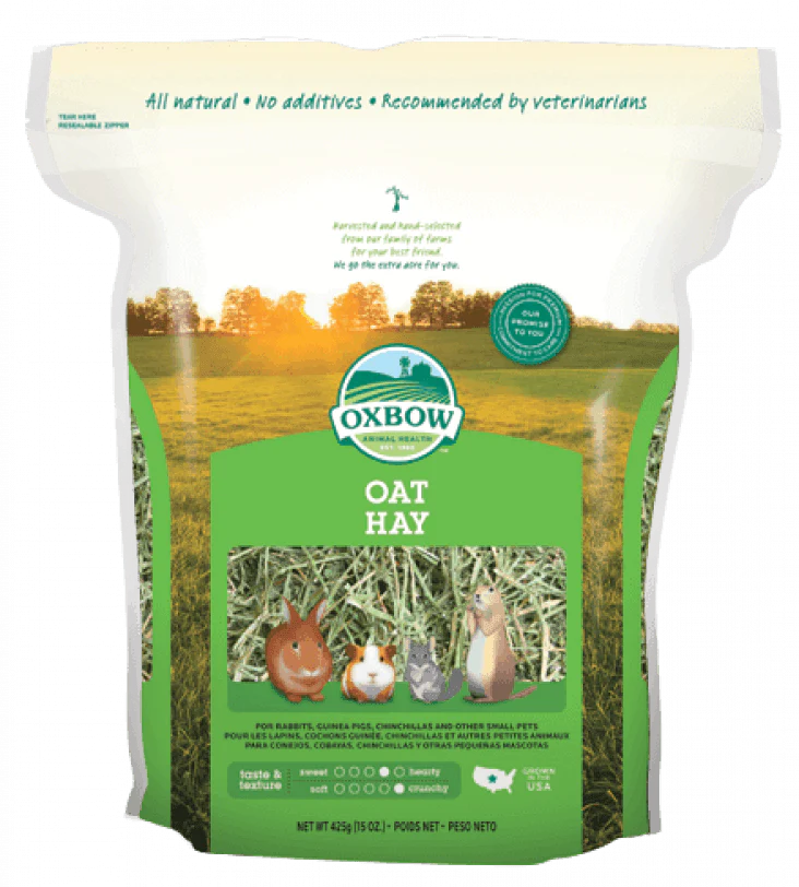 Le foin d’avoine copieux et sélectionné à la main d’Oxbow est un favori de nombreux lapins, cobayes et chinchillas. Notre foin d’avoine est récolté avant que l’avoine ne se développe en une graine, fournissant des enveloppes salées pleines de saveur et de fibres. Son arôme stimulera l’appétit de votre animal et l’encouragera à manger plus de foin. Votre animal de compagnie devrait avoir du foin d’herbe illimité tous les jours.