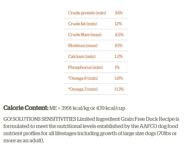 Nos recettes-GO SENSITIVITIES- ont été créées pour les animaux ayant des besoins alimentaires spécifiques. Mais tous les chiens les adoreront ! Soigneusement préparée avec tous les nutriments dont votre chien a besoin avec le moins d’ingrédients possible, y compris le canard sans cage comme source unique de protéines de volaille, et rien ajouté qui n’est pas nécessaire.