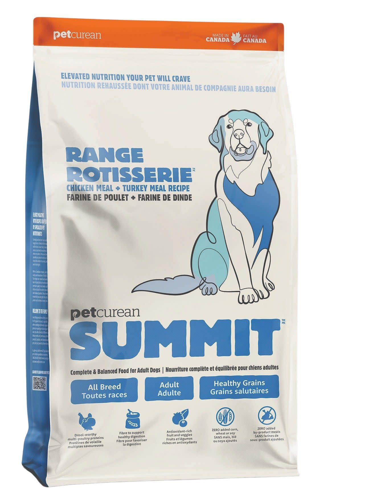 Inspirée par les chaînes de montagnes de la Colombie-Britannique et du goût tendre de la volaille rôtie, la recette Summit Range Rotisserie associe des viandes de première qualité comme le poulet et la dinde, des légumes comme la citrouille, les courges, les patates douces, les carottes, les lentilles et les brocolis. On y retrouve aussi des bleuets, de la grenades, de la banane, de la canneberge et des céréales comme le seigle, l’orge, l’avoine ainsi que les graines de lin. Chaque bouchée sera une explosion de saveur pour votre compagnon.