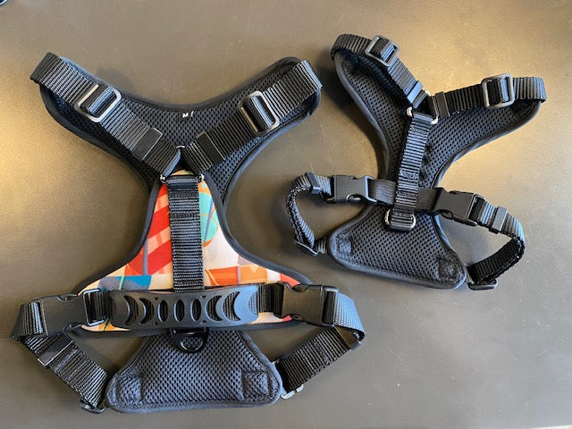 Les harnais Puck & Co est l’outil par excellence pour promener votre chien ainsi que l’éduquer à la marche au pied. Le harnais est ajustable au niveau du poitrail et du torse pour un confort optimal. Il est muni d’un anneau dorsal (sur le dessus du harnais) et frontal (le devant du harnais), pour l’empêcher de trop tirer. Son design ainsi que le matériel choisit est conçu pour optimiser le confort de votre chien. Ce modèle est aussi muni d’une poignée afin de faciliter vos déplacements avec votre chien. Nos harnais sont fait de tissu super résistant et de sangle de nylon, ce qui les rend souples et confortables pour votre chien. Il est donc facile à nettoyer et possible de l’utiliser lors de vos sorties à la plage. Nos harnais sont doublés de tissu pour un confort maximum.