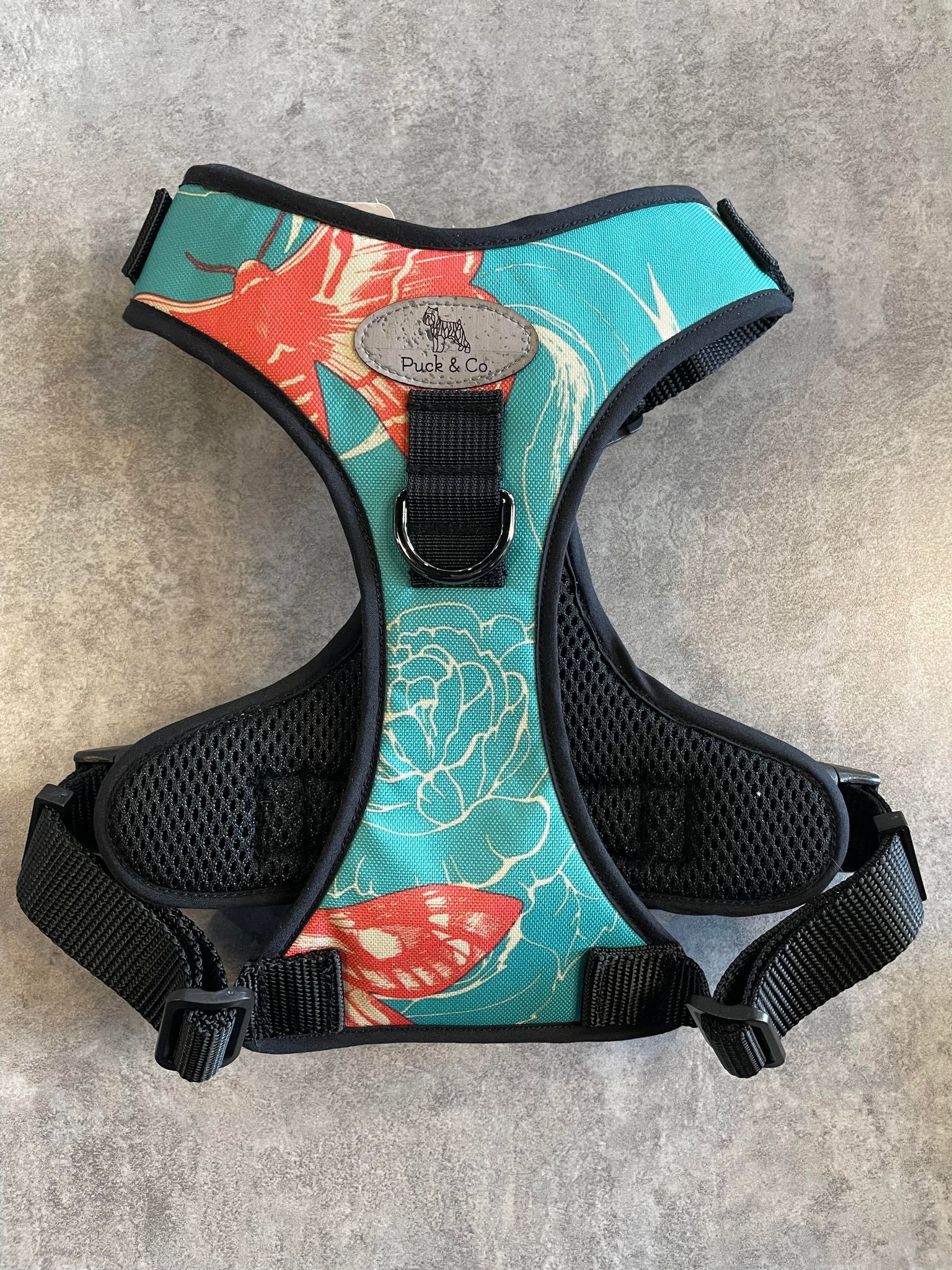 Les harnais Puck & Co est l’outil par excellence pour promener votre chien ainsi que l’éduquer à la marche au pied. Le harnais est ajustable au niveau du poitrail et du torse pour un confort optimal. Il est muni d’un anneau dorsal (sur le dessus du harnais) et frontal (le devant du harnais), pour l’empêcher de trop tirer. Son design ainsi que le matériel choisit est conçu pour optimiser le confort de votre chien. Ce modèle est aussi muni d’une poignée afin de faciliter vos déplacements avec votre chien. Nos harnais sont faits de tissu super résistant et de sangle de nylon, ce qui les rend souples et confortables pour votre chien. Il est donc facile à nettoyer et possible de l’utiliser lors de vos sorties à la plage. Nos harnais sont doublés de tissu pour un confort maximum.