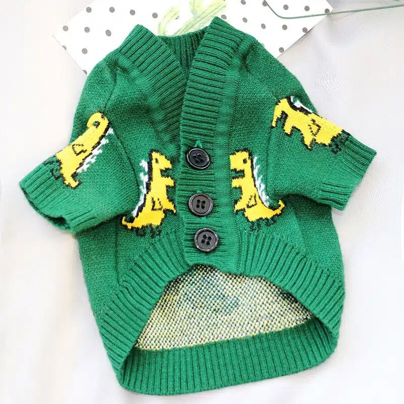 Vous êtes coutumier de habiller votre matou ? Alors, notre pull à motif dinosaure pour chat vous ravira ! Il sera beau pour votre compagnon à quatre pattes. Mais surtout, ce vêtement chaud le protégera du froid en hiver. En fonction de la taille de votre minou, vous le trouverez en différentes tailles.