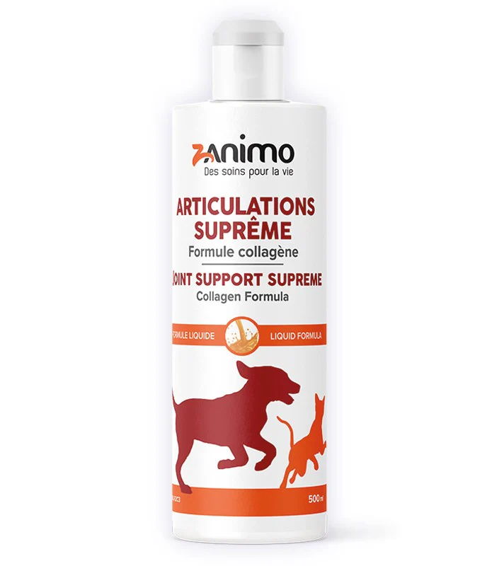 Suprême avec collagène contribue à la mobilité et à la souplesse des hanches, des articulations et des ligaments. Elle supporte la santé du cartilage et des os, favorise la flexibilité et maintient le confort articulaire. Cette recette unique est l’une des meilleures options à donner à son animal qui souffre de douleurs articulaires et de raideurs au lever. Elle contient une synergie de 6 ingrédients actifs et efficaces qui ont démontré des résultats visibles en 10 jours.