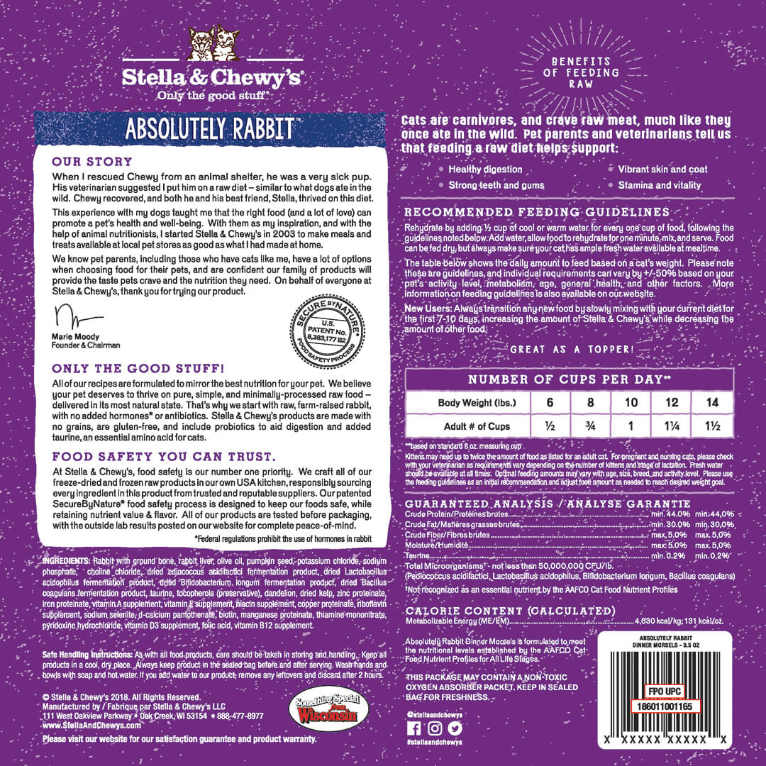 Stella & chewy dinner morsels lapin cru lyophilisés nourriture pour chat et chaton