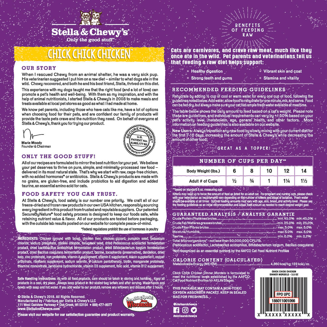 Stella & chewy dinner morsels poulet cru lyophilisé nourriture pour chat et chaton