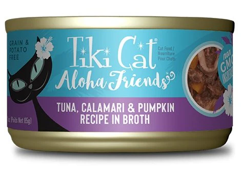 Thon, bouillon de thon, calamars, citrouille, huile de tournesol, lactate de calcium, phosphate tricalcique, chlorure de choline, taurine, supplément de vitamine E, sulfate de zinc, niacine (vitamine B3), mononitrate de thiamine (vitamine B1), pantothénate de calcium, sulfate de manganèse, supplément de vitamine A, supplément de riboflavine (vitamine B2), chlorhydrate de pyridoxine (vitamine B6), sulfate ferreux, acide folique, sulfate de cuivre, iodure de potassium, supplément de vitamine D3, complexe menadione de bisulfite de sodium (source d’activité de la vitamine K), biotine, vitamine B12 supplément.