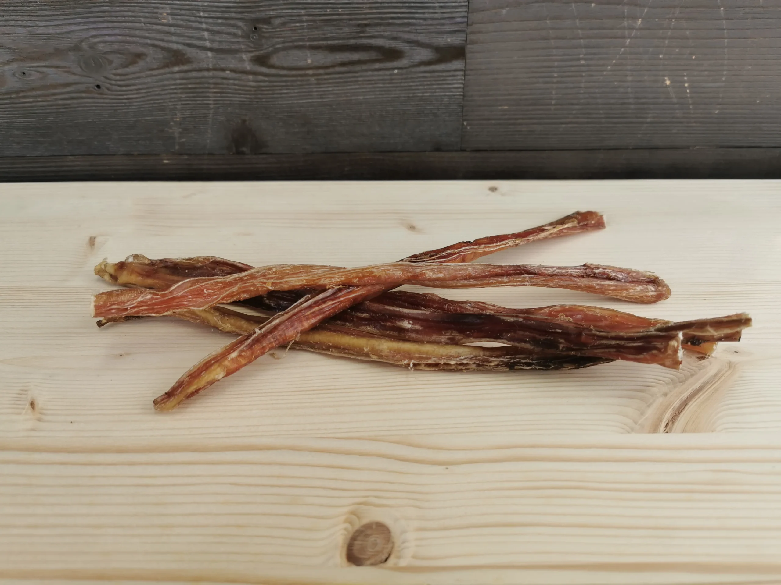Produit issu de productions québécoises/canadiennes! Votre animal sera ravi par ce bâtonnet de veau, élevé en liberté, naturellement déshydraté, qui ne contient aucun agent de conservation. Bonne source de protéines, faible en gras et facilement digestible. Cette gâterie est totalement naturelle et inoffensive pour votre animal. Tous les clients à 4 pattes de la boutique Animali en raffolent, du plus petit au géant!
