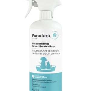 Purodora – Neutralisant d’odeurs d’animaux pour literie – Genévrier et Poire – 473ml