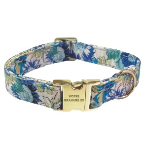 Collier pour chat personnalisé style floral bleu